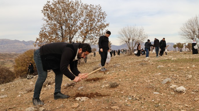 Aan de voet van de berg Cudi in de Koerdische provincie Şırnak hebben milieuactivisten zondag duizenden eikels geplant. De actie maakt deel uit van een regionale herbebossingscampagne onder het motto “Verzamel een eikel, plant een eikel”. Het doel is om te protesteren tegen de voortdurende vernietiging van het milieu in de regio en tegelijkertijd een boodschap van hoop en vrede uit te dragen.