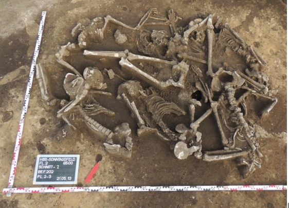 ‘The eight men and one woman bear signs of precisely inflicted blunt force cranial trauma, suggesting they were victims of mass execution’, dat stond daarbij vermeld, The Smithsonian.