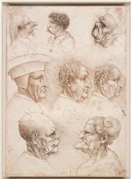 Hij schuwde het niet om de minder fijne trekjes van de medemens op te tekenen. Een botoxje of een strakgetrokken hazenlip, dat zat er toen nog niet in. What you see is what you get. In zijn tijd groeide de opvatting dat de uiterlijke lelijkheid de spiegel was van de innerlijke verdorvenheid. Da Vinci observeerde. De voortschuifelende, imperfecte mens kon zijn ontledende blik niet ontlopen. Dat werd geen love affair. Geen John Legend ode aan ‘All your perfect imperfections’. Nee, het was meer een soort van fascinatie. Wratten, puisten, bulten en bochels, dat was allemaal fijn oefenmateriaal, op weg naar zijn ultieme date met de Mona Lisa. Alles voor de kunst.