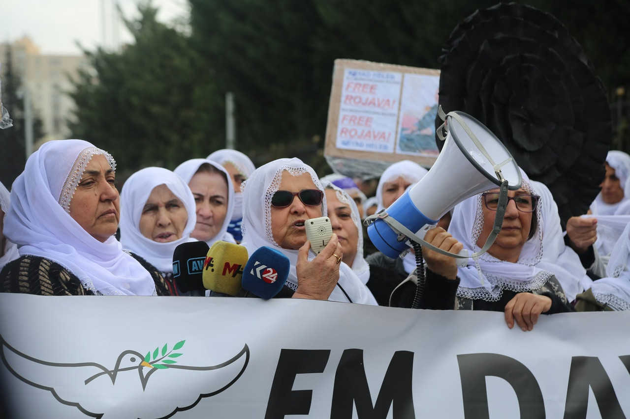 Emine Eren, een andere Vredesmoeder, zei in haar toespraak: "In Rojava woedt een oorlog waarin geen respect is voor mensenlevens. Turkije heeft gewapende groeperingen getraind en naar de oorlog gestuurd. Deze oorlog is een misdaad tegen de menselijkheid. Wij eisen het aftreden van de minister van Buitenlandse Zaken. Het bloed van Koerdische kinderen mag geen onderdeel zijn van politieke deals.“ Eren richtte zich ook tot het internationale publiek met de woorden: ”Al-Jolani is niets meer dan ISIS, en Turkije steunt hem. Nogmaals: wij willen vrede, geen deals ten koste van de Koerden."