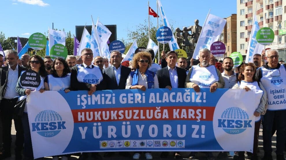 De Confederatie van Vakbonden van Overheidsmedewerkers (KESK) heeft een mars georganiseerd om te eisen dat overheidsmedewerkers die op grond van staatsdecreten (KHK) zijn ontslagen, weer in dienst worden genomen en dat de democratische rechten worden hersteld. De mars begon op 13 oktober in Diyarbakır (Amed) en eindigt op 17 oktober voor het parlement in Ankara. De mars nadert Ankara vanuit zes verschillende richtingen: Diyarbakır, Urfa (Riha), Adana, Mersin, Gaziantep (Dîlok) en Adıyaman (Semsûr). KESK heeft onlangs in Adıyaman een openbare verklaring afgelegd en aangekondigd dat de mars wordt voortgezet.