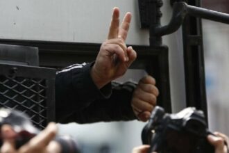 De menigte en voorbijgangers protesteerden tegen de arrestaties en scandeerden de slogan “Schouder aan schouder tegen het fascisme”, terwijl de politie probeerde te voorkomen dat verslaggevers foto’s namen.