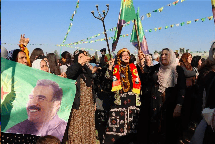 Op het feestplein scandeerden de aanwezigen de slogans “Dit is niet het einde, maar een nieuw begin” en “Lang leve leider Abdullah Öcalan”. Ze dansten de dabkeh op revolutionaire liederen en hesen de vlaggen van de PKK en de Unie van Koerdische Gemeenschappen (KCK), evenals foto’s van leider Abdullah Öcalan.