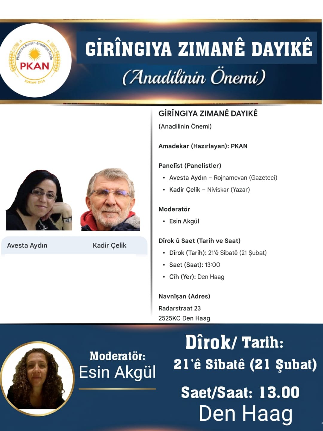 Het Platform voor Koerden uit Anatolië in Europa (PKAN) heeft in het kader van de Internationale dag van de Moedertaal op 21 februari een seminar op het programma staan.